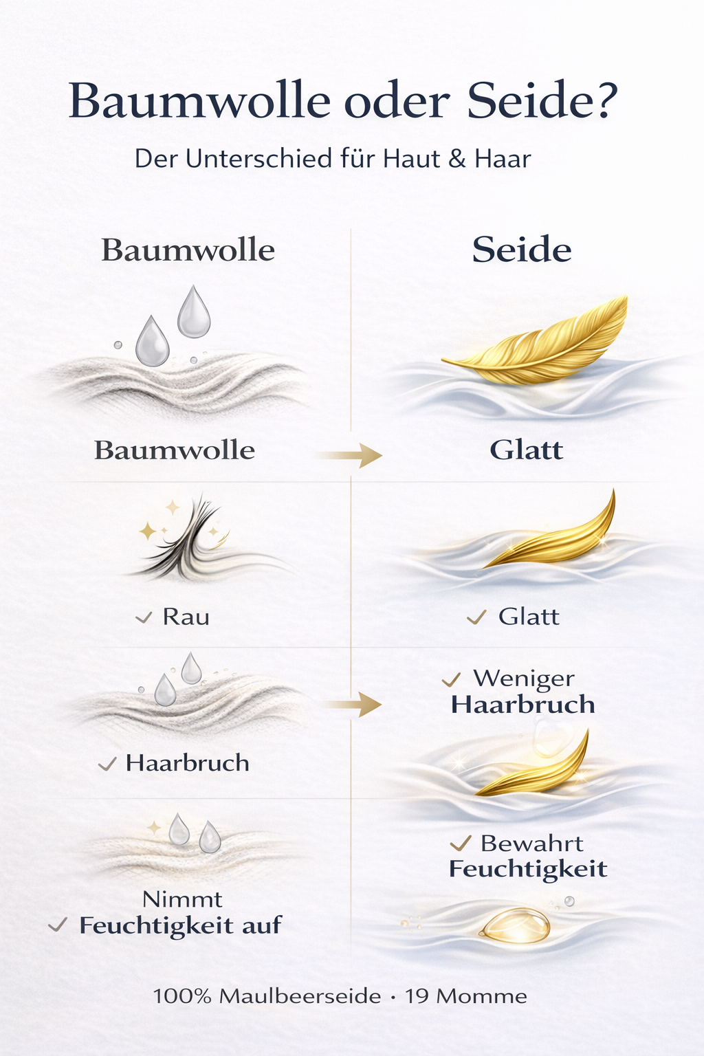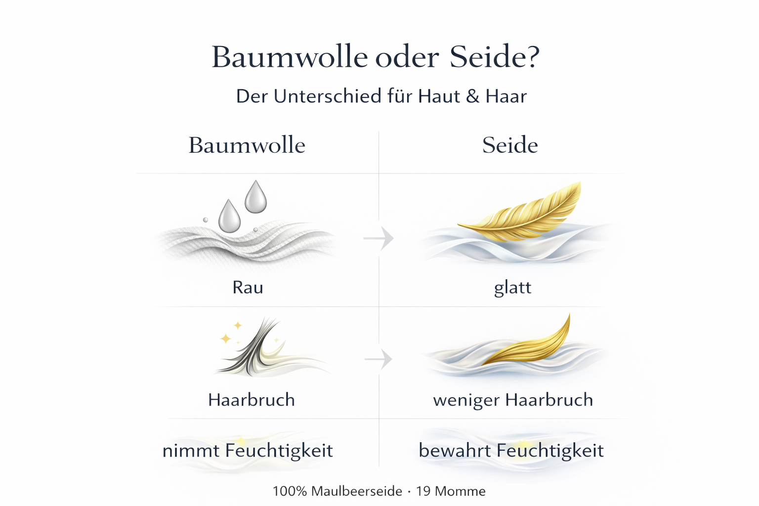 Zeitlose Farben, hochwertige Verarbeitung & langlebige Seidenprodukte für erholsamen Schlaf.